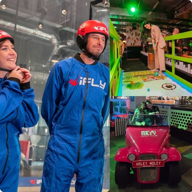After flying, you’ll head to Holey Moley Northbridge for 18 holes of mini golf. The playful courses and friendly competition make the perfect follow-up, giving you a day full of laughs, excitement, and lighthearted fun.